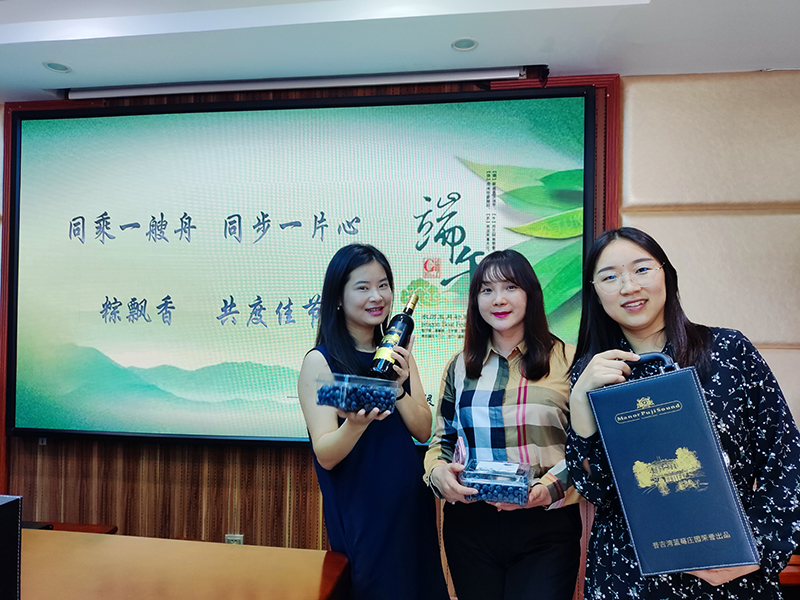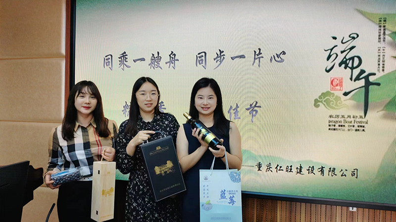 今年端午,重庆仁旺建设有限公司特别定制了健康与品味并重的节日礼包——精选优质蓝莓与经典红酒,作为对全体员工辛勤付出的回馈。蓝莓,以其丰富的营养价值和鲜美的口感,寓意着公司对员工健康的深切关注;而红酒,则代表着公司对员工生活品质提升的期望,希望每位员工在享受工作成就的同时,也能品味生活的醇香。