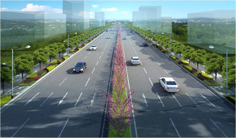 建筑面积:标准路幅宽40m ,道路全长约1km
